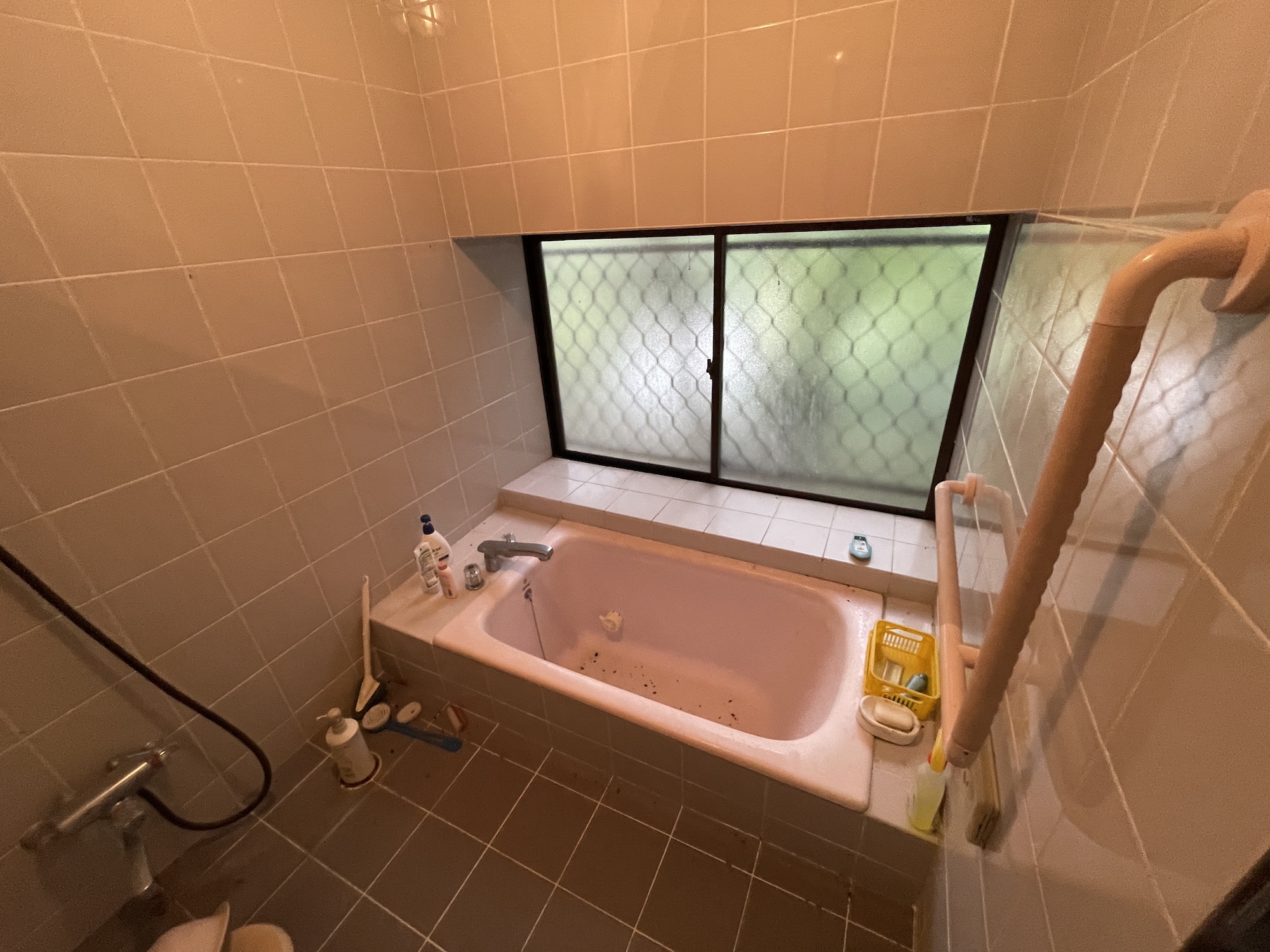 眺望の良さを活かしきれていなかったバスルームは、湯船に浸かりながら緑の借景を楽しめる窓に変更しました。浴槽は縁が薄く、際までお湯を張れる形状。親子でゆったりバスタイムを楽しめます。