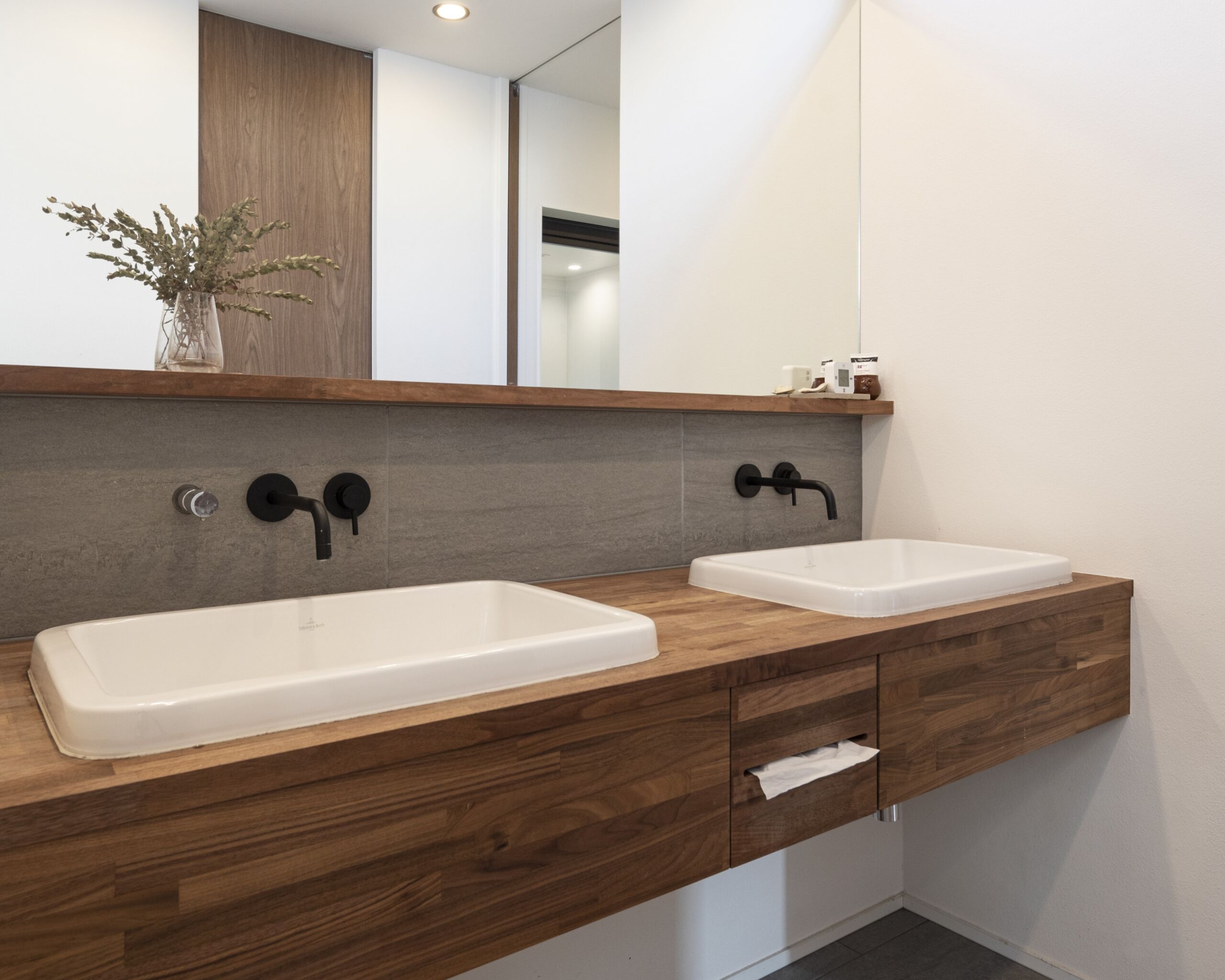家族が毎日使う場所であると共に、ゲストの利用頻度も高い洗面スペースは、機能性にもデザインにもこだわりたい場所。造作のご要望もたくさんいただきます。