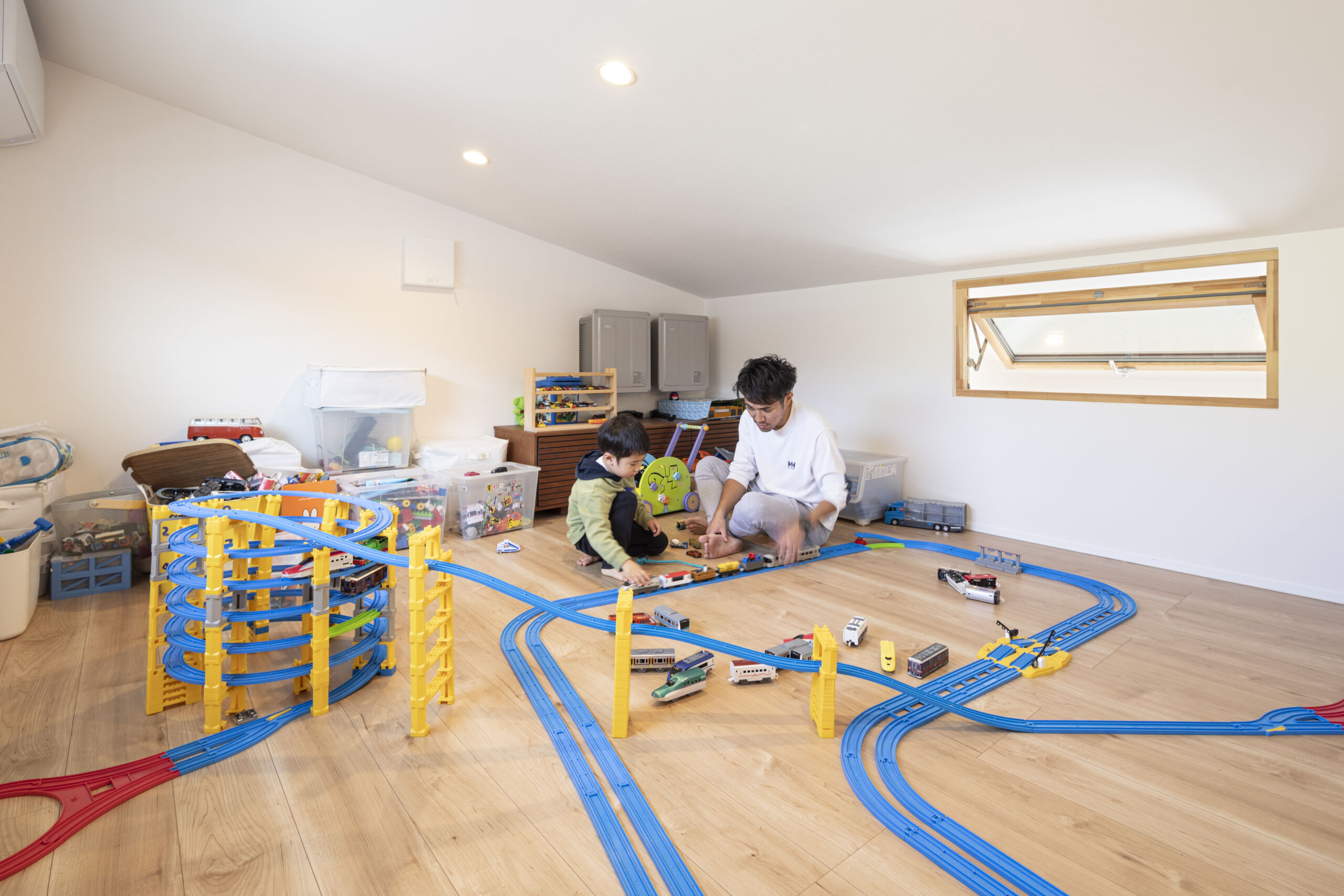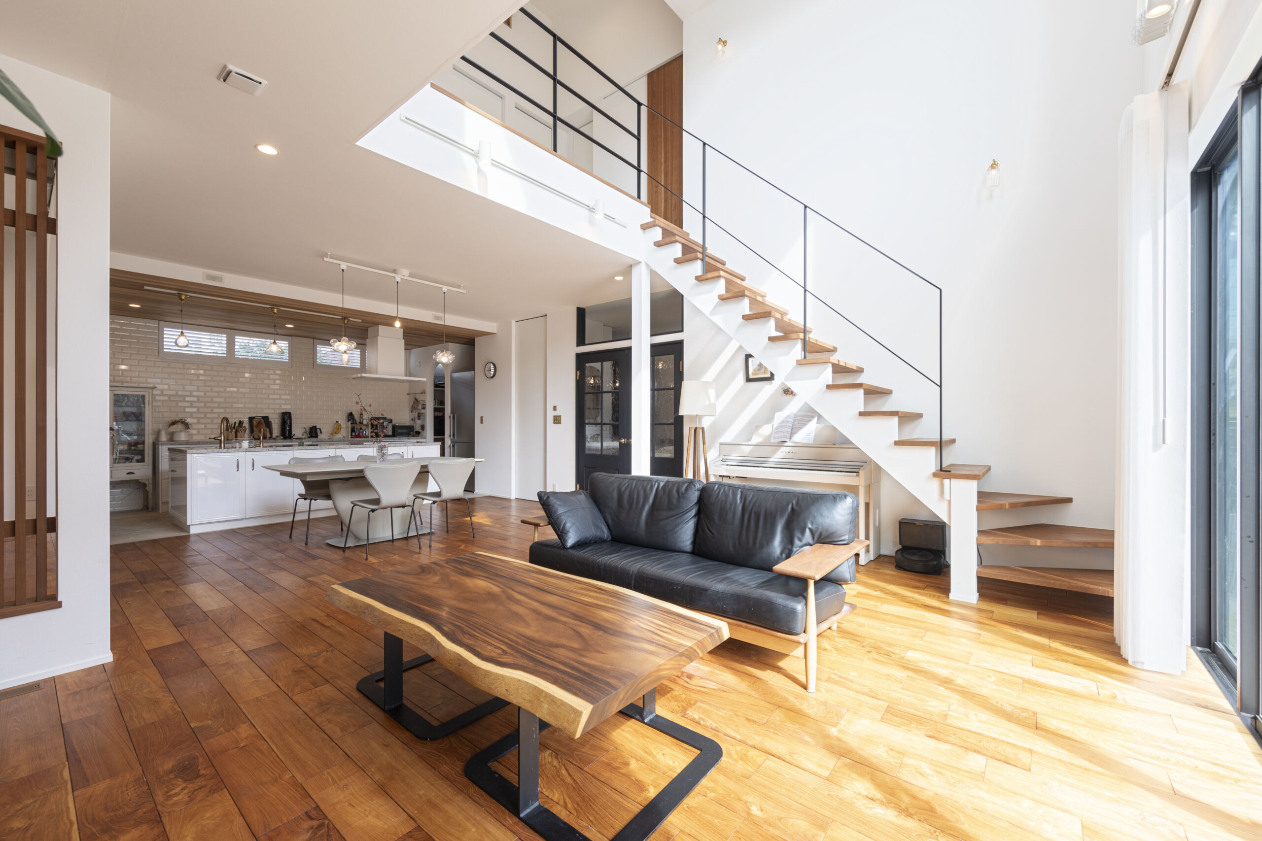 O様邸は、テラス、吹き抜けリビング、アイランドキッチン、ヌック、スタディスペース、ロフトなど、家中に様々な共有空間をちりばめた家です。