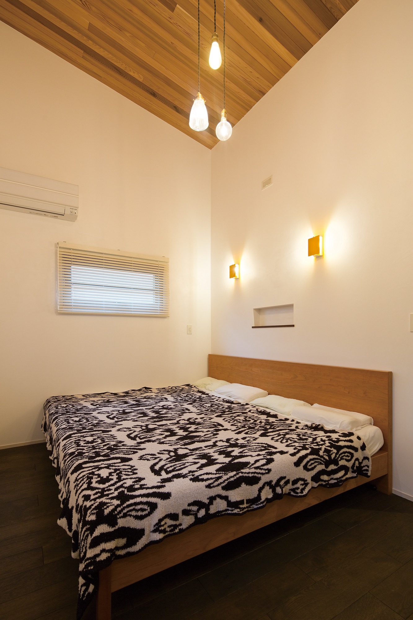 2~3灯のペンダントライトを設置する照明計画なら、寝室やトイレなど比較的小さな空間でも多灯吊りが可能です。設置スペースは小さくても、十分ドラマチック。灯数が少ないので比較的バランスも取りやすいでしょう。