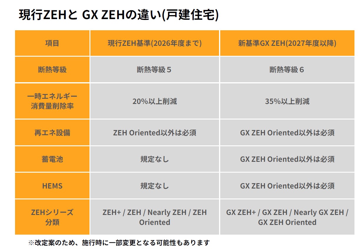 2027年4月からは、現行の「ZEH」が「GX ZEH」に移行します。