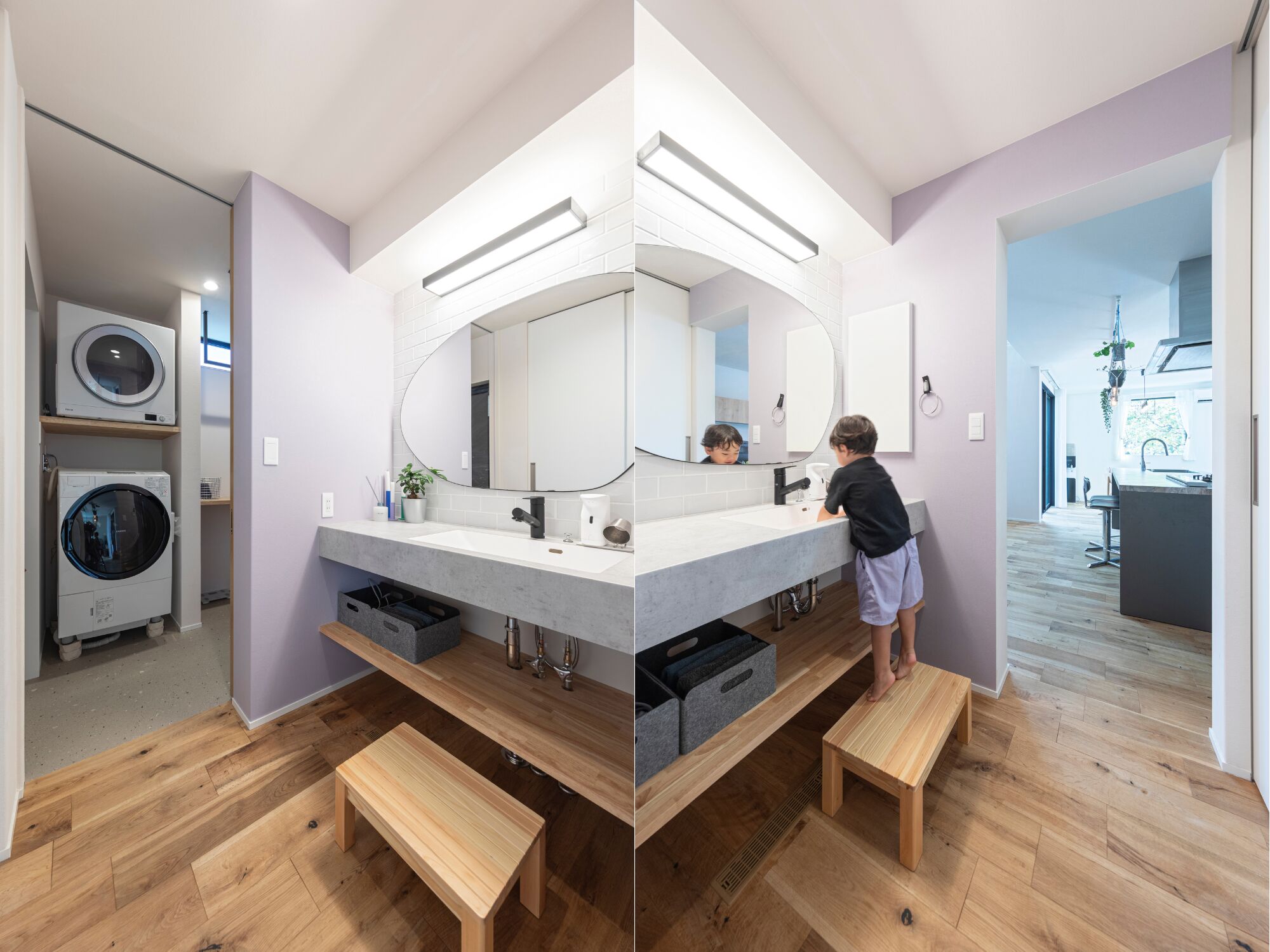 脱衣所を使う人と、洗顔・歯磨きをする人がかち合っても互いに邪魔にならないため、時間帯を問わず水まわりを同時に使えます。