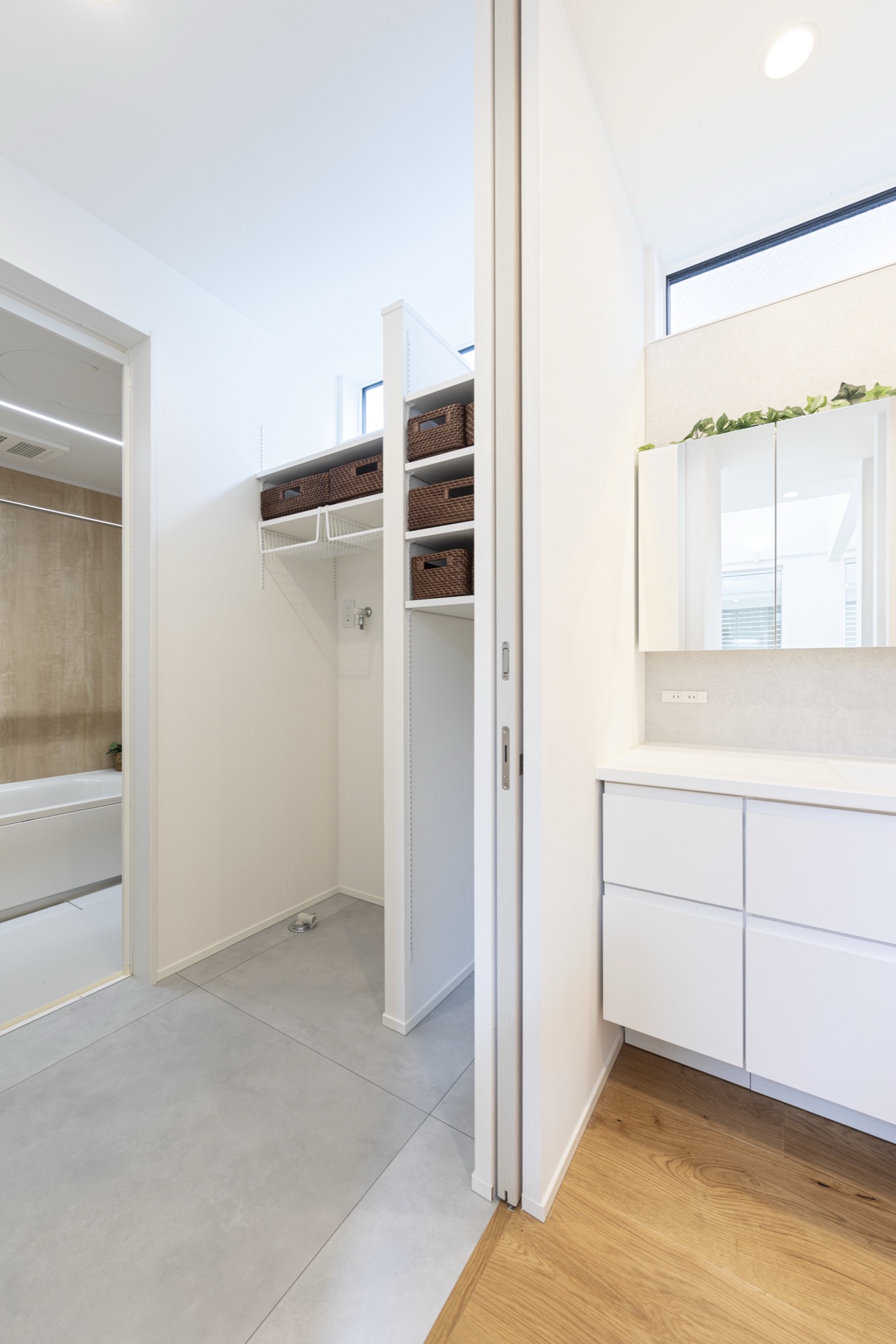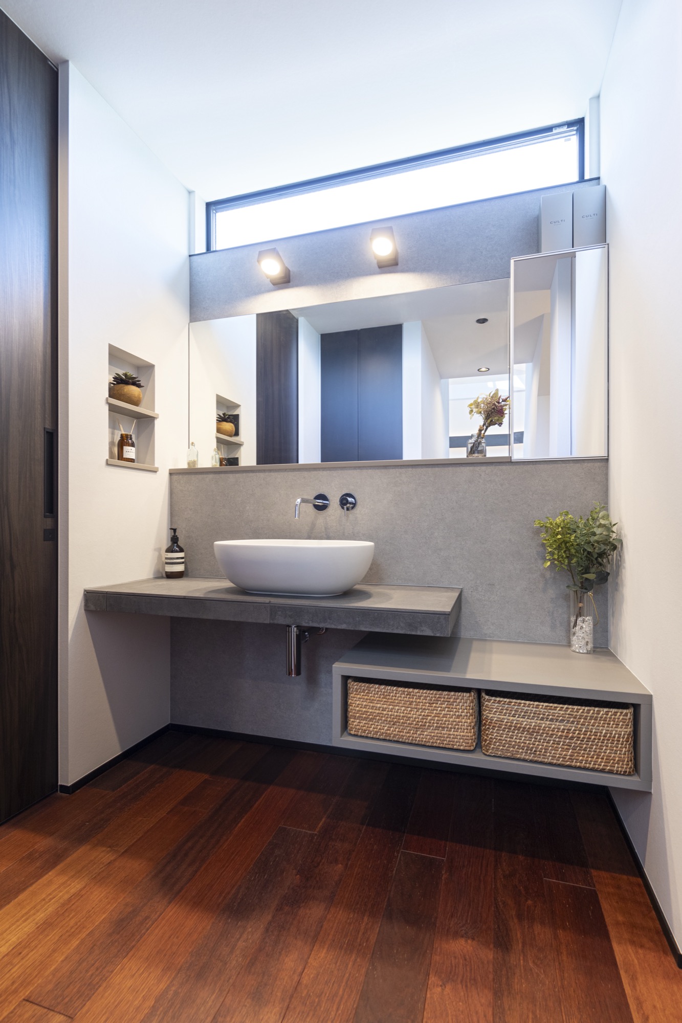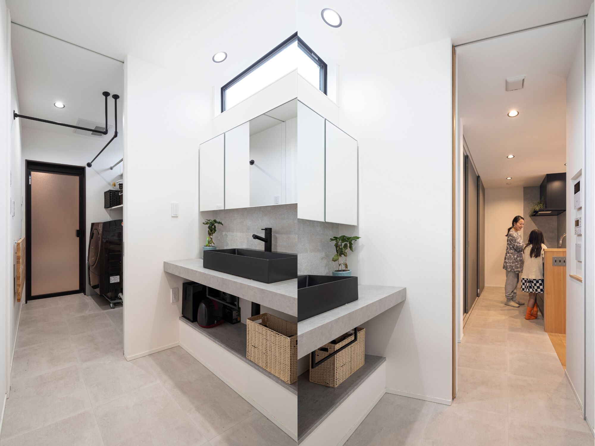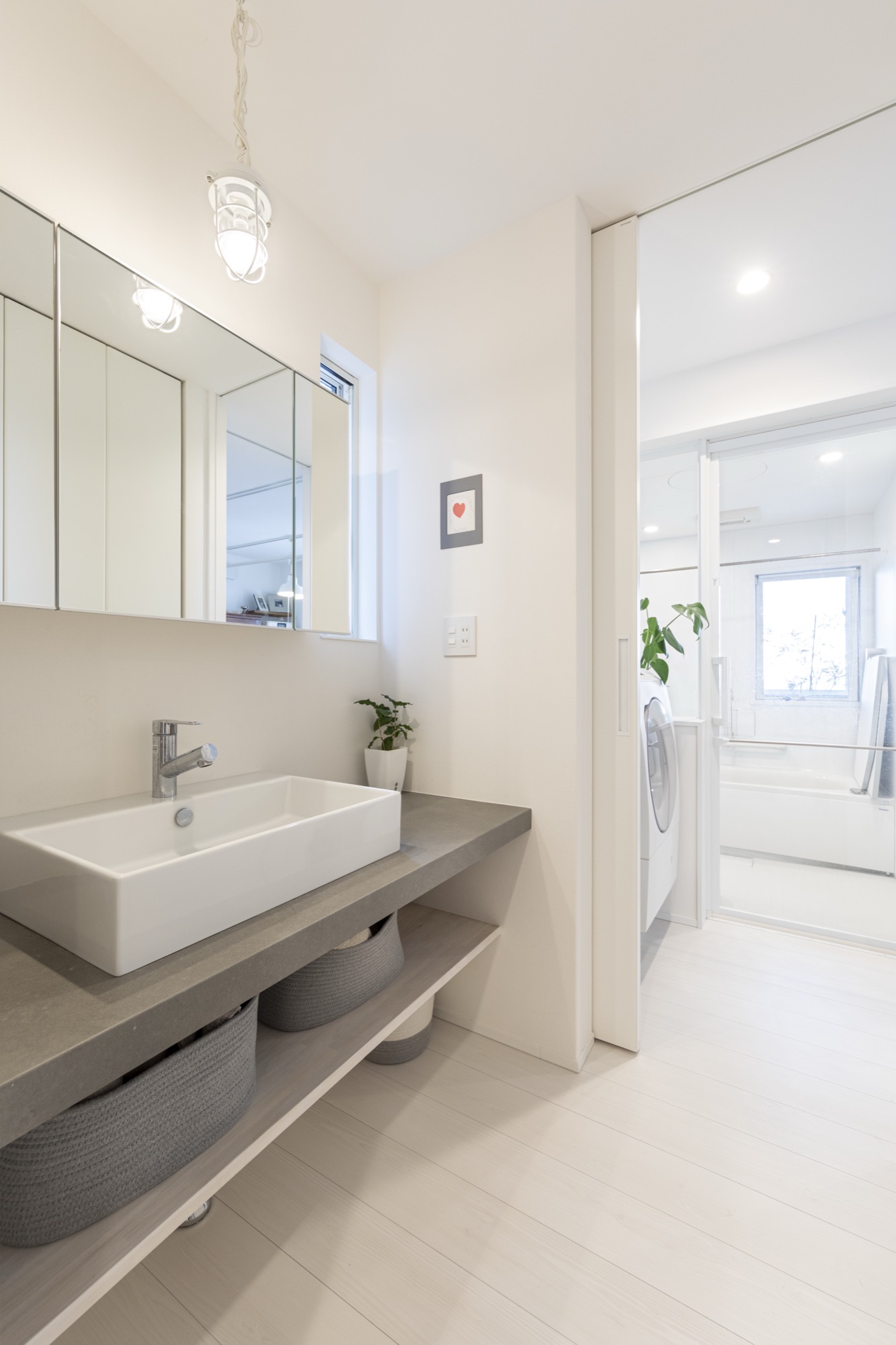 脱衣所やランドリースペースと分けることで、洗面所の生活感を排除しやすくなり、来客の目にも触れる半パブリック空間として、デザインにこだわれます。