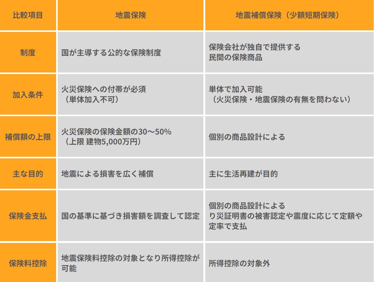 【地震保険と地震補償保険(少額短期保険)の違い】