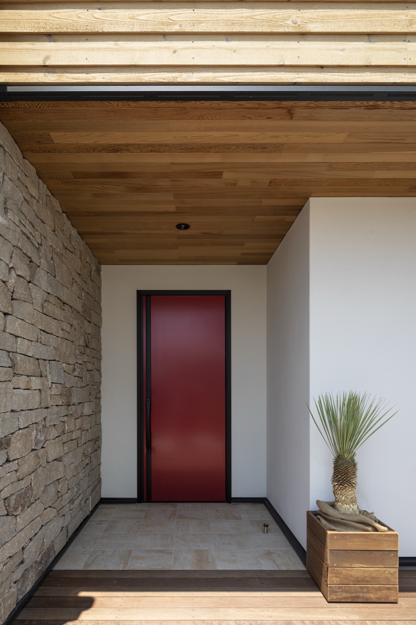 玄関ポーチの周辺に目隠し壁や植栽を配置することで、外からの視線をシャットアウト。プライバシーを守り、防犯性も高まります。