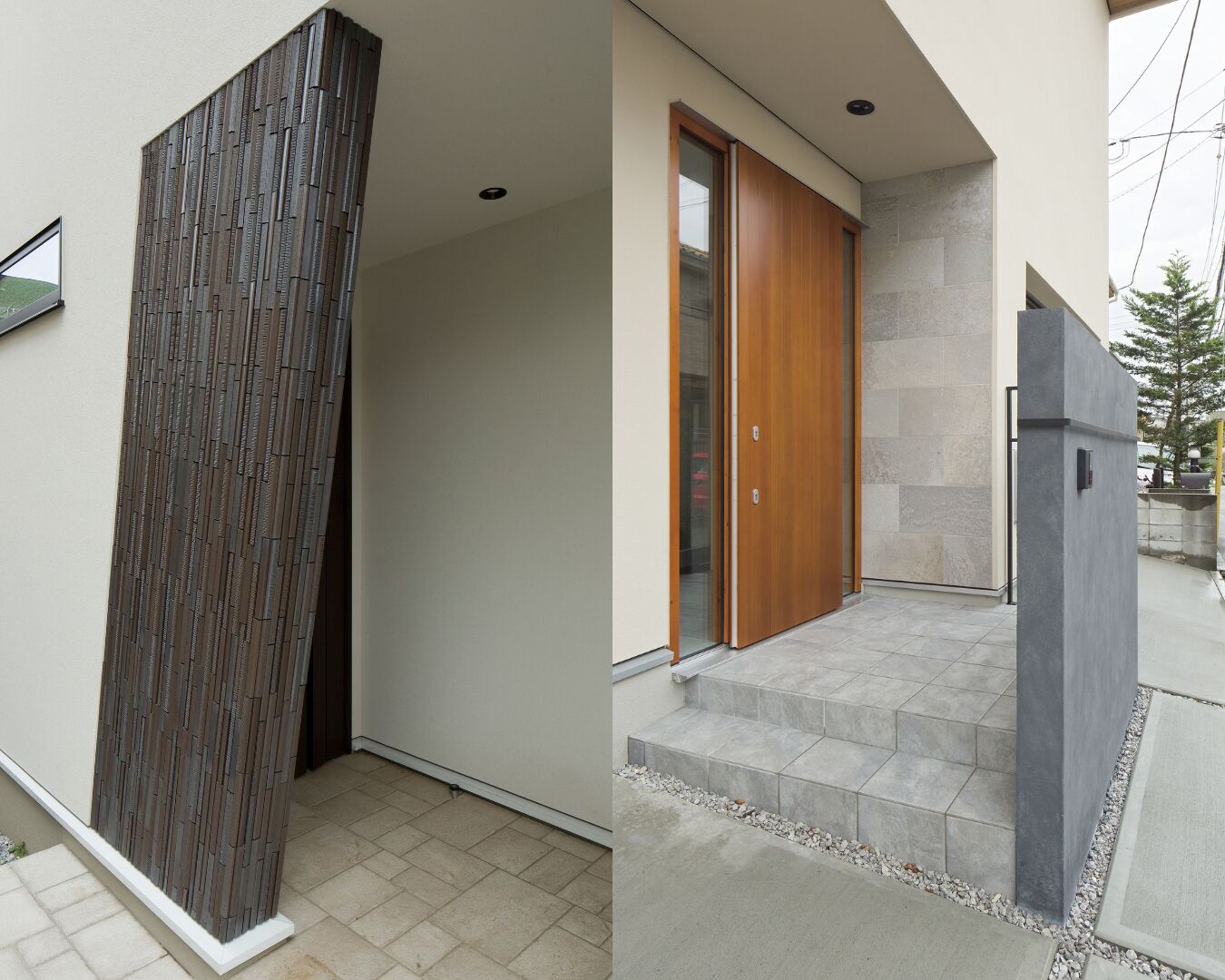 玄関ポーチにスリットや格子を設けることで、適度に目隠ししつつ、採光や通風も確保できます。ゆるやかに仕切りたい場合や、デザイン性にこだわりたい場合にオススメです。