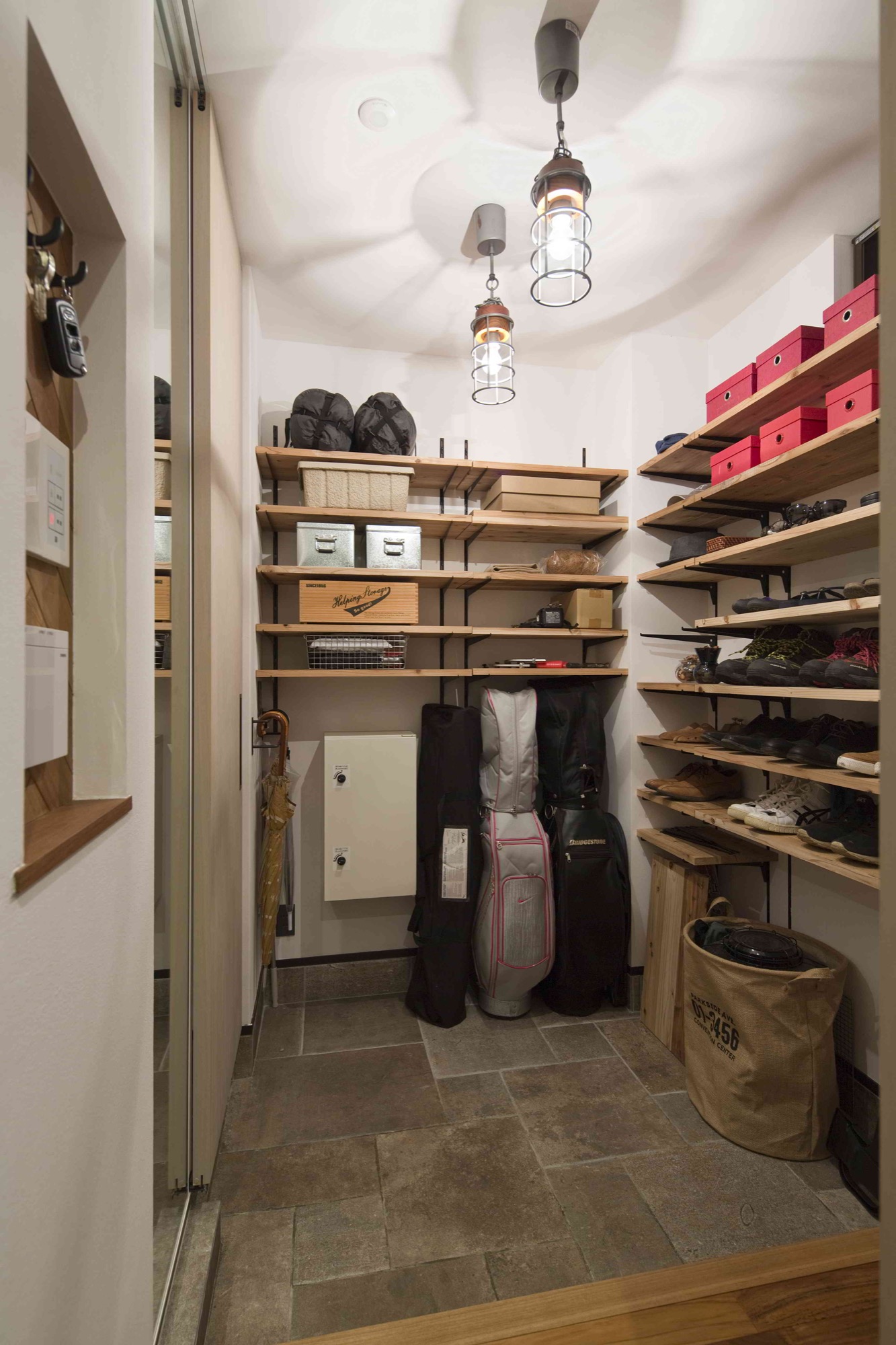 可動棚、ポール、有孔ボード、照明、電源など、土間収納をより使いやすくカスタマイズするためのアイデアをご紹介。室内物干しスペースとしての活用法も。
