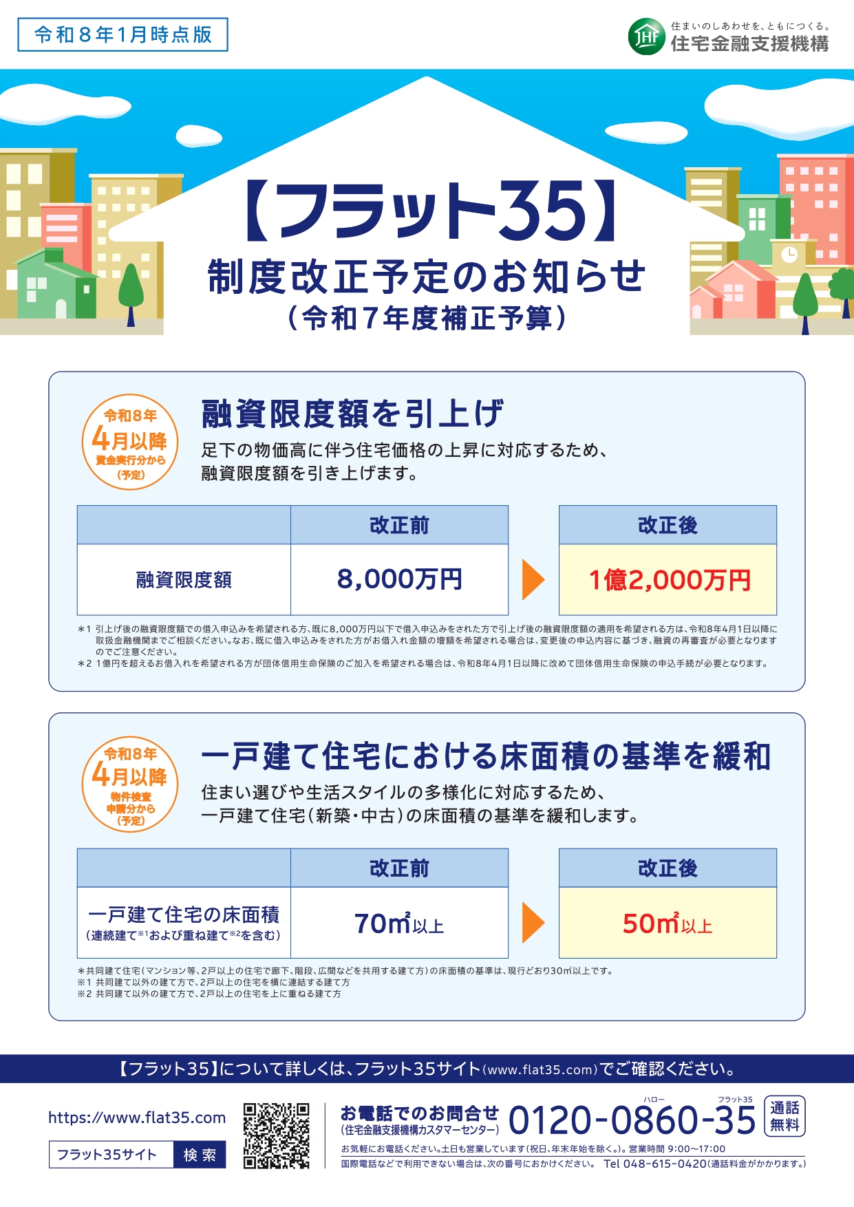 融資限度額がこれまでの8,000万円から1億2,000万円に引き上げられます。物価高に伴う住宅価格の高騰に対応した改定です。
