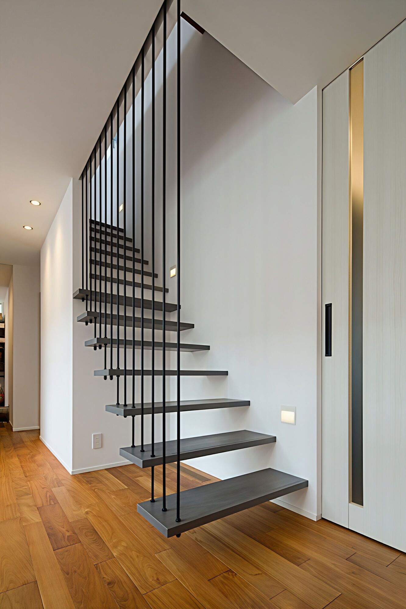 ④ミニマリズムを極めた浮遊階段