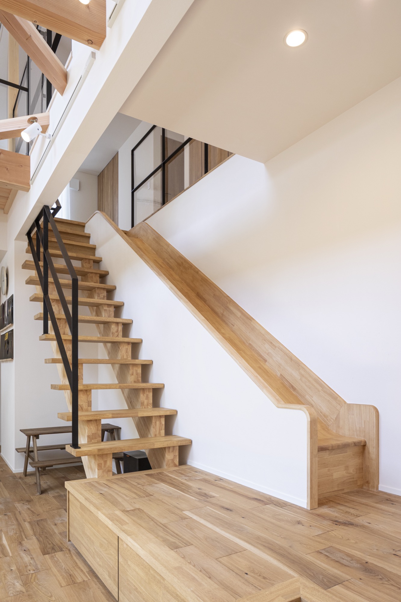 踊り場の活用法や手すりのスタイルにこだわることで、さらに多彩な表情を描けます。
