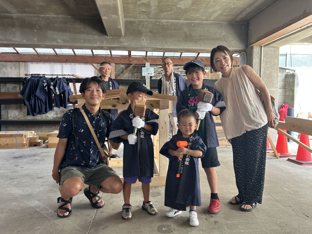 ミニ上棟体験では、木の香りを感じながら、小さな家の骨組み作りに挑戦しました。