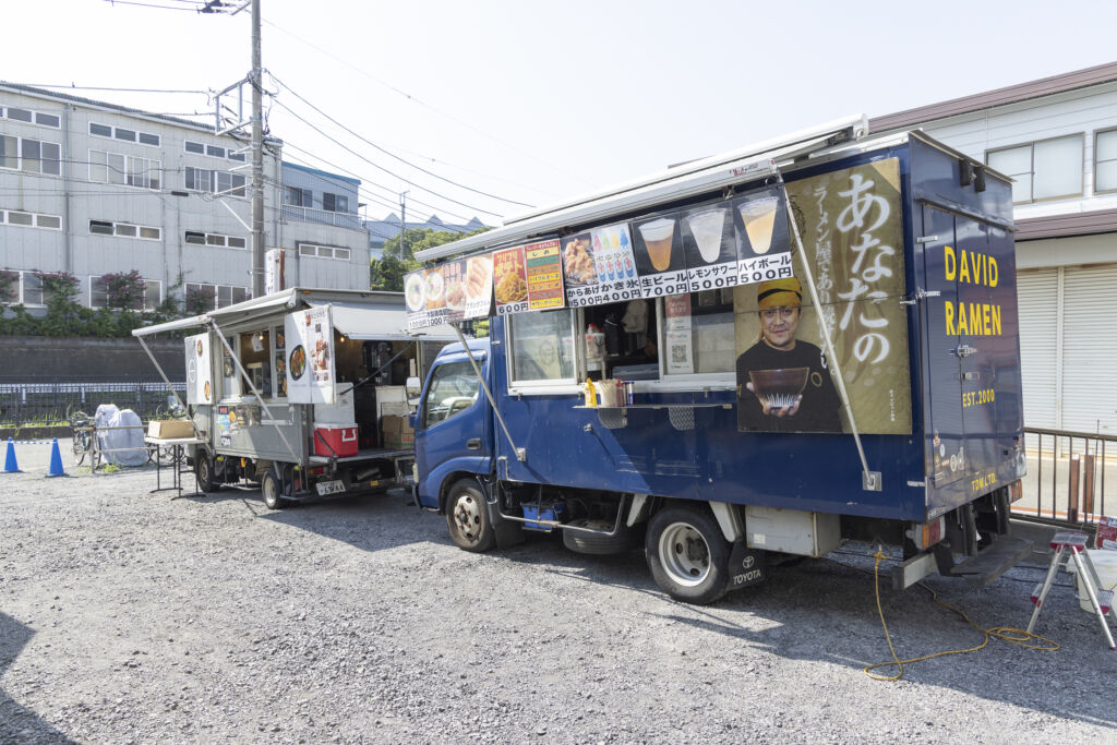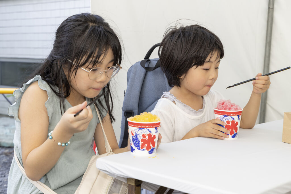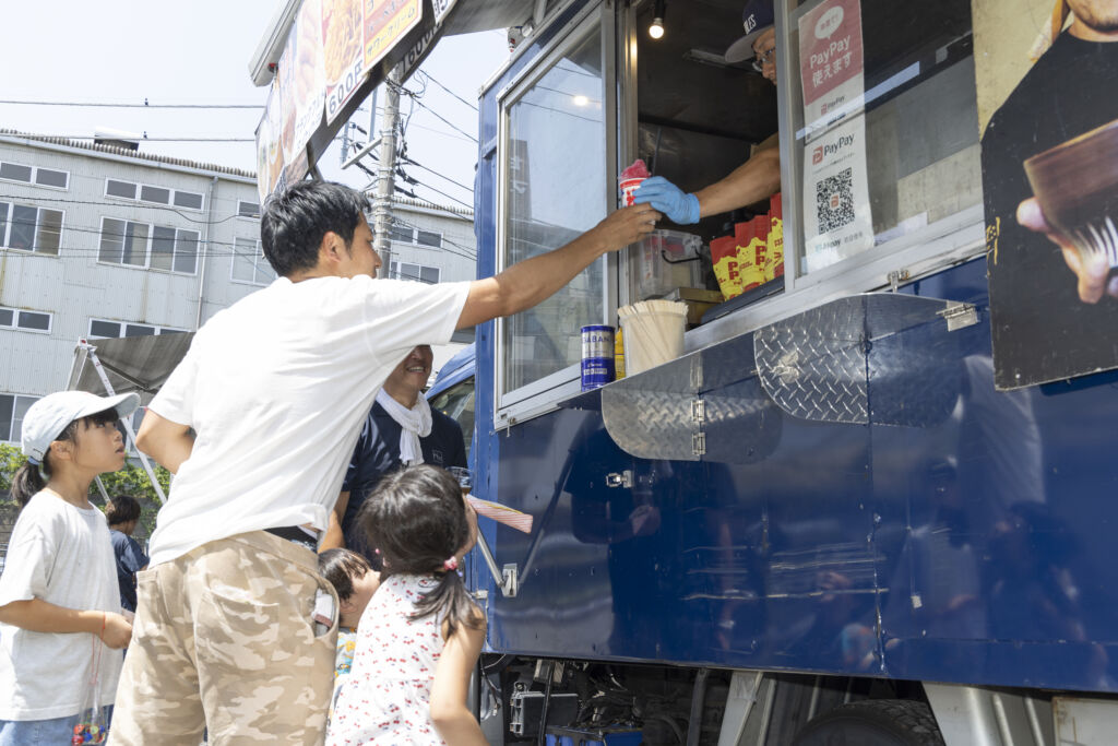 キッチンカーで買ったかき氷や、ビールを片手に、日差しを避けて腰を下ろし、